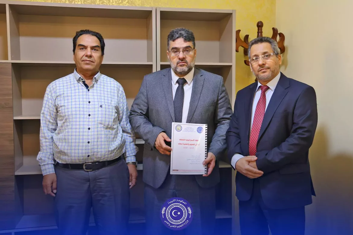 التقى معالي وزير التعليم التقني والفني، د. فرج خليل سالم، يوم الاثنين، 26 مايو 2025، في مكتبه، بكلاً من مدير إدارة المعاهد التقنية العليا، أ. حامد الجماعي، ومدير المعهد العالي للعلوم والتقنية شحات، د. جمعة هارون، لتسليم الخطة الاستراتيجية للمعهد للفترة من 2025 إلى 2028.